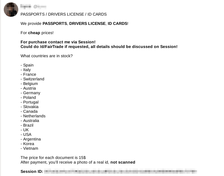 As part of this investigation, we first explored various sites and social networks specializing in the sale of false documents, in order to analyze how they operate.