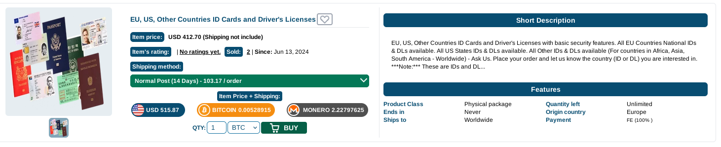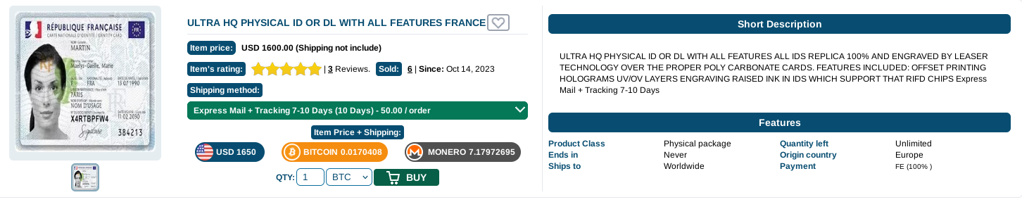 Sellers can be found on the dark web, where specialized marketplaces offer forged documents in exchange for cryptocurrencies. The descriptions are often sketchy, and the range of documents is limited.