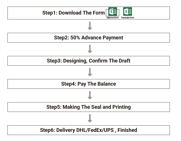 - As mentioned earlier, several sites in the Chinese cluster require users to fill out and submit an Excel document to order a fake diploma or transcript. A site in the US cluster also uses a similar process. To highlight potential connections, we compared the different metadata of these 4 documents.