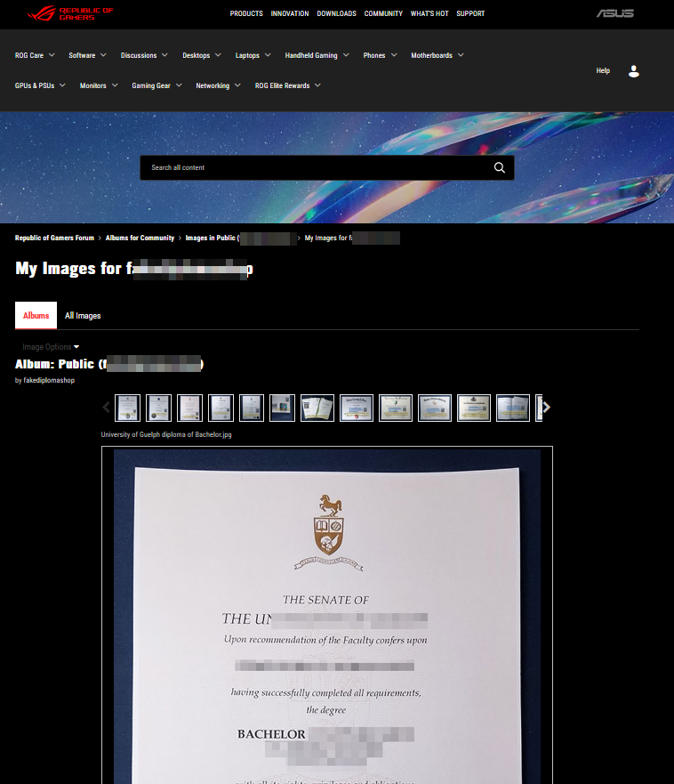 On Issuu, through numerous posts containing keywords related to fake diplomas;