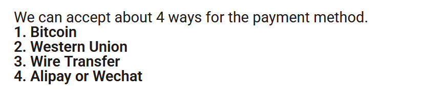 - The first category of payment methods includes traditional options like Western Union, bank transfers, Alipay and WeChat. The main drawback of these methods is that they involve intermediaries that are subject to strict regulations and monitoring systems designed to prevent fraud and money laundering. Additionally, registering for these services usually requires identity verification.