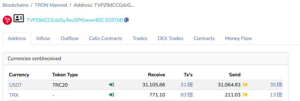 To illustrate the issue of using an unsuitable cryptocurrency for payments without additional protections, we'll analyze two examples encountered during our research. We came into contact with counterfeiters on Telegram and WeChat, posing as potential customers. To proceed with the settlements, they provided us with their TRC20 wallet addresses, allowing us to observe the financial activities of these criminals.