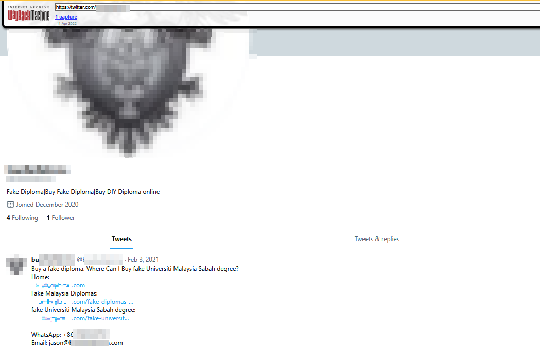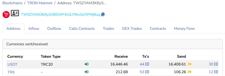 A second wallet (TWSZYAM3KByS38SWP41JLY9m3aTrPMj8uq), also linked to a Chinese counterfeiter or group of counterfeiters, reportedly received over $16,000 in USDT in 2024. The latter is said to sell a Master's degree from a French school for $550.